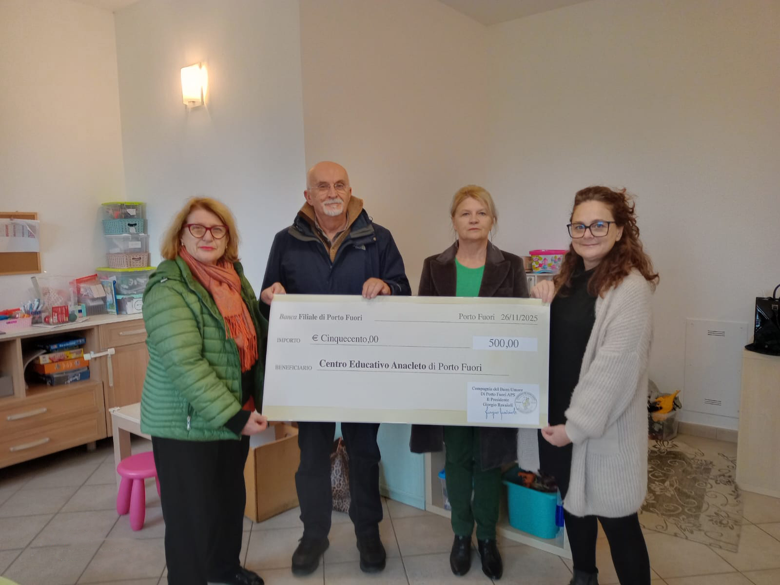 Il centro educativo Anacleto ha ricevuto un dono molto speciale dalla Compagnia del Buon Umore di Porto Fuori. L’associazione di attori dilettanti specializzata in spettacoli in dialetto romagnolo ha infatti consegnato un assegno di 500 euro per dare modo al centro di portare avanti le proprie attività con bambini e ragazzi autistici.