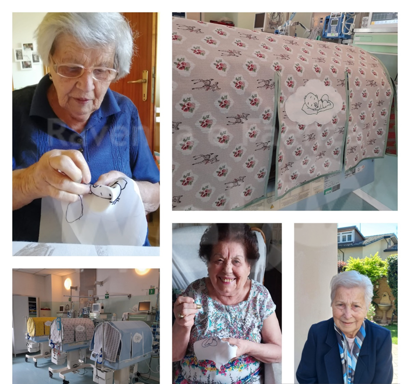 I copri culla sono stati realizzati da alcune volontarie dell’Associazione utilizzando stoffe acquistate e in parte donate da negozi che hanno subito l’alluvione. I copri culla inoltre sono stati impreziositi da ricami eseguiti da tre signore ultra novantenni. Un bell’esempio di comunità collaborativa. Un sentito ringraziamento è stato espresso da tutto il personale a nome anche della Direzione Sanitaria dell’Ospedale