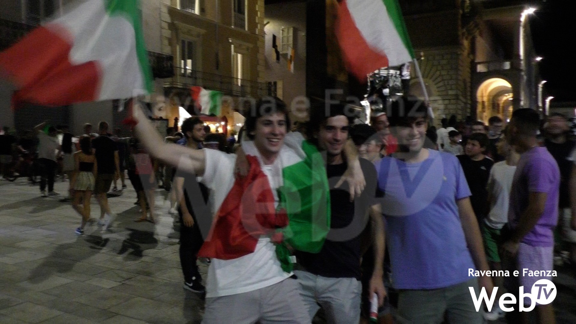 I calci di rigore consegnano all’Italia la vittoria ai Campionati Europei di calcio. Per le strade e le piazze della provincia di Ravenna inizia la festa di tutti coloro che si sono radunati a vedere gli azzurri in finale contro l’Inghilterra. A Faenza, in poco tempo, Piazza della Libertà si riempie di tifosi, soprattutto giovani, bandiere, musica, canti e balli. Stesso discorso per l’area attorno al Pavaglione a Lugo. A Ravenna, come da tradizione, la festa è invece in viale Farini. I richiami alla cautela di questi giorni delle autorità vengono presto dimenticati. In pochi con la mascherina, praticamente nessun distanziamento, persone che scalano i monumenti per issare più in alto le bandiere. L’Italia del pallone torna ad essere Campione d’Europa. È la seconda volta dopo il trionfo del 1968.