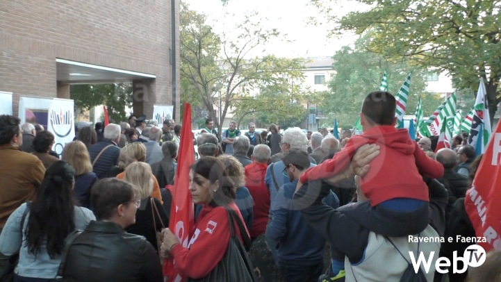 Presidio davanti alla sede dell’Ordine delle Professioni Infermieristiche (OPI) dopo l’attacco vandalico di venerdì scorso. Sindacati e ordini professionali legati al mondo della sanità lunedì pomeriggio si sono ritrovati in piazza Bernini a Ravenna insieme a istituzioni locali e forze dell’ordine in segno di risposta agli attacchi del gruppo novax ViVi, che venerdì ha imbrattato le sedi di Cgil, Cisl, Uil e OPI a Marina di Ravenna e a Ravenna. Un segnale di solidarietà concreto dopo i tanti messaggi arrivati nelle ore successive i raid, a difesa dei sindacati e dei professionisti impegnati in prima linea durante la pandemia.