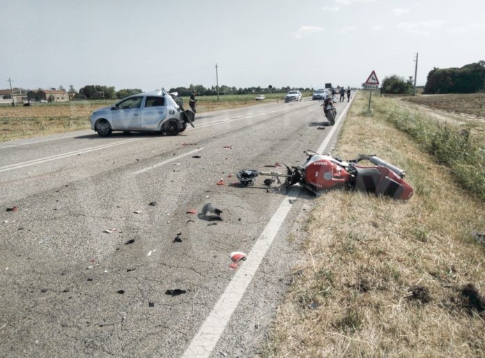 Incidente mortale poco dopo le 14,30 sulla SP 9, all’incrocio tra la via Bastia e la provinciale 17 a San Bernardino, un motociclista cinquantenne alla guida di una Yamaha ha tamponato violentemente una Mitsubishi con a bordo due donne. Il motociclista purtroppo nonostante i tentatici di rianimazione degli uomini del 118 è deceduto sul posto. Illesi ma sotto choc gli occupanti dell’auto.