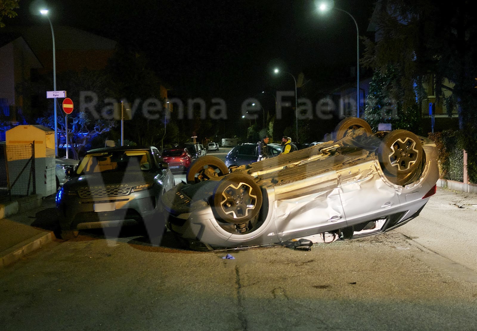 Verso le due di notte un Opel Mokka con due persone a bordo è finita rovesciata dopo lo scontro con una Fiat Punto nell’incrocio tra via Fano e via Ancona a Ravenna. Non sono ancora note le cause dell’incidente, che sono al momento sotto inchiesta da parte della polizia locale di Ravenna.