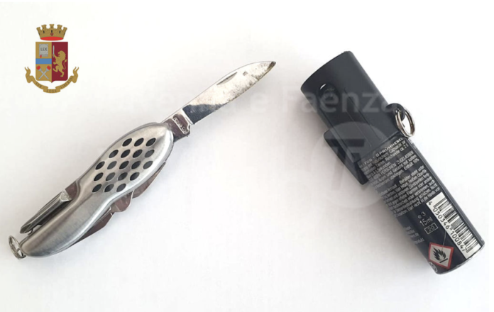 S.H., pluripregiudicato per molteplici reati contro il patrimonio e la persona, durante il controllo è stato trovato in possesso di un coltello della lunghezza di circa dodici centimetri, e di una bomboletta di spray urticante al peperoncino, che sono stati sequestrati.