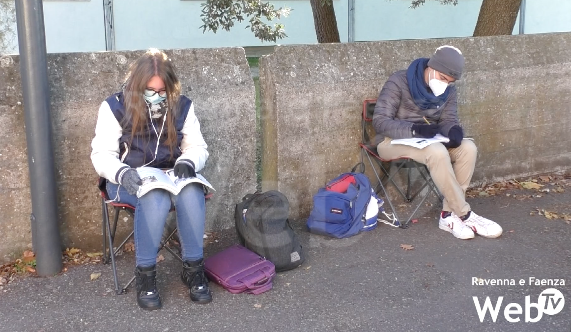 Non hanno ceduto al freddo Rachel e Alessandro, due studenti delle superiori che questa mattina hanno deciso di seguire le proprie lezioni seduti fuori dall’Istituto Tecnico per Geometri “Camillo Morigia” per protestare contro la didattica a distanza. Quello che i due ragazzi chiedono è di poter tornare a scuola in presenza con i propri compagni, per avere una migliore preparazione scolastica e scongiurare il rischio che alcuni coetanei vivano la socialità esclusivamente dietro lo schermo di un computer. Per questo Rachel e Alessandro invitano tutti gli studenti che dicono no alla didattica a distanza ad unirsi alla loro protesta silenziosa, per poter tornare a scuola nel rispetto delle norme per prevenire il contagio.