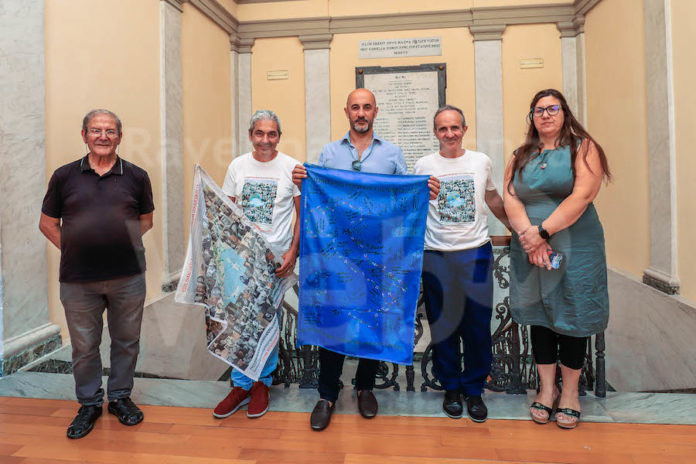 Al termine della visita, il sindaco ha firmato il drappo siglato da tutti i primi cittadini dei paesi coinvolti nell’itinerario.