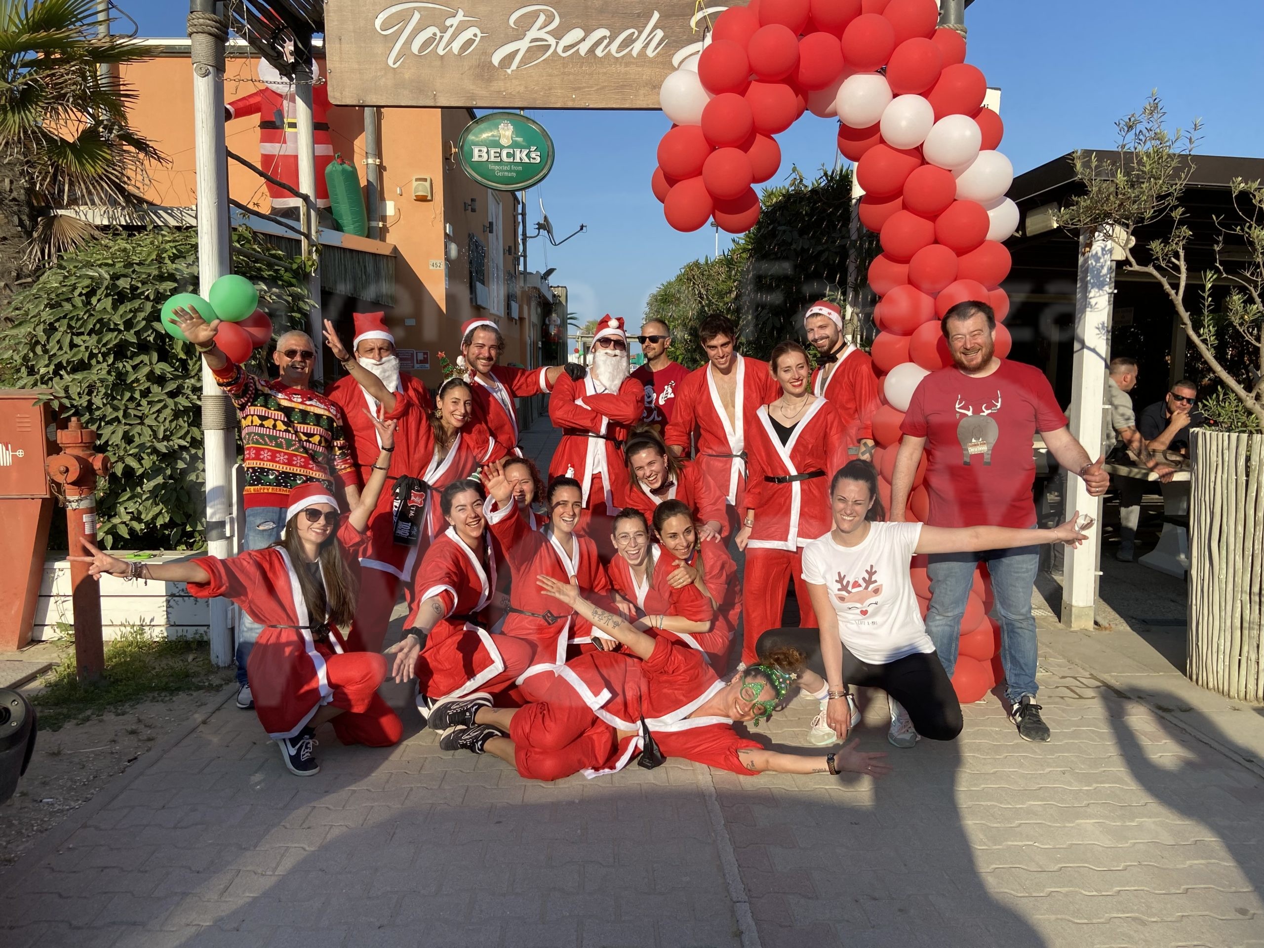 Il bel tempo anticipa la stagione e sulle nostre spiagge iniziano le feste, il Toto Beach di Marina di Ravenna si è trasformato per un giorno in un villaggio di Natale.