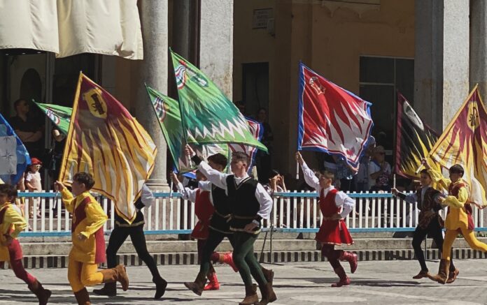 In attesa della Bigorda d’Oro di sabato 7 giugno, Piazza del Popolo torna ad animarsi con i colori delle bandiere. L’appuntamento è per domenica 1° giugno alle 16.00 con il Torneo dei giovanissimi Alfieri Bandieranti e Musici Under 15 nelle categorie Esordienti, Giovanissimi e Under15, mentre la sera, alle 21.00, è previsto il Giuramento dei cavalieri che disputeranno il 26° Torneo della Bigorda d’Oro e, a seguire, la gara delle bandiere nelle specialità del Singolo e Coppia Under 21. In caso di maltempo le gare saranno spostate al PalaCattani, mentre il Giuramento dei Cavalieri sarà rinviato a sabato 7 giugno, giorno stesso della Bigorda.