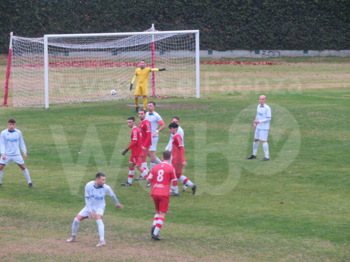 Il Faenza, ferito, ha l’occasionissima per pareggiare, ma Gjordumi, solo davanti a Lofiego liberato da un passaggio di Pezzi, spreca passando in pratica il pallone al portiere avversario.