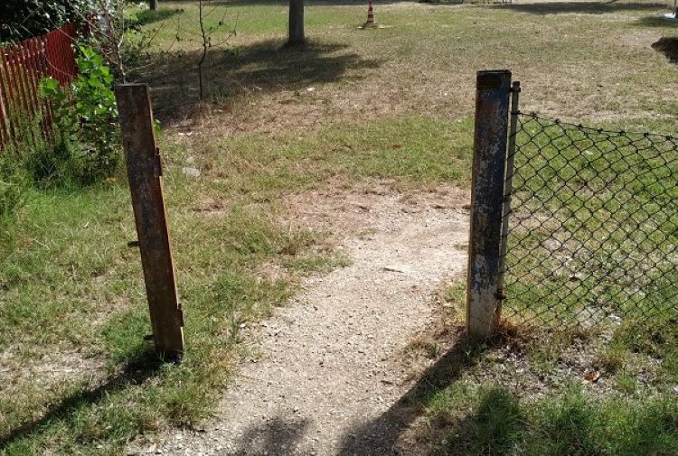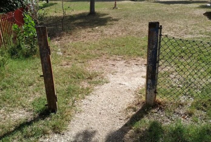 Già all’ingresso del parco quella sorta di mosaico di piastrelle che accoglie il visitatore è davvero in uno stato di penosa incuria, e cosa dire poi della panchina a cui manca lo schienale con il rischio di ferire chi vi si sieda. Tronchi e ramaglie varie sono sparsi un po’ in giro, come pezzi in cemento dei cordoli delle aiuole ed una pedana di legno posta sotto un albero. Il parco viene probabilmente utilizzato anche per dormire o bivaccare, come si può vedere da alcuni asciugamani a terra accanto ad un lungo cartone che forse fa da letto e ad un pezzo di aiuola annerita, come incenerita. Rami spezzati che ormai toccano terra con grave pericolo per quei bambini che li vogliano giocare, e dulcis in fundo una fontanella totalmente inservibile e vandalizzata, così come alcune recinzioni e porte metalliche.