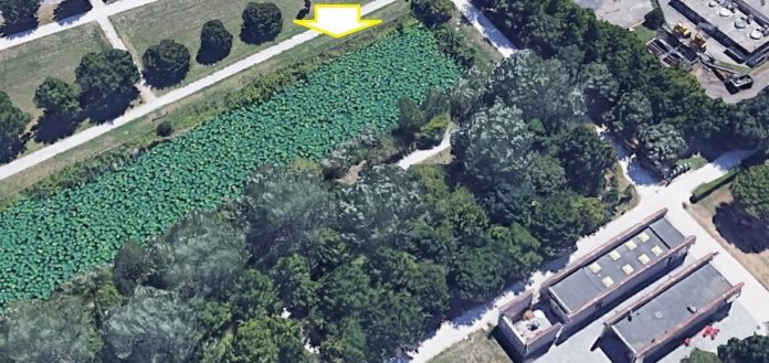 in questo periodo dell’anno il laghetto artificiale risulta completamente coperto da una rigogliosa vegetazione a foglia larga, condizione che non consente di distinguere con chiarezza la presenza dello specchio d’acqua sottostante e la mancanza di un’adeguata protezione potrebbe rappresentare un pericolo per la sicurezza dei bambini che frequentano il parco.