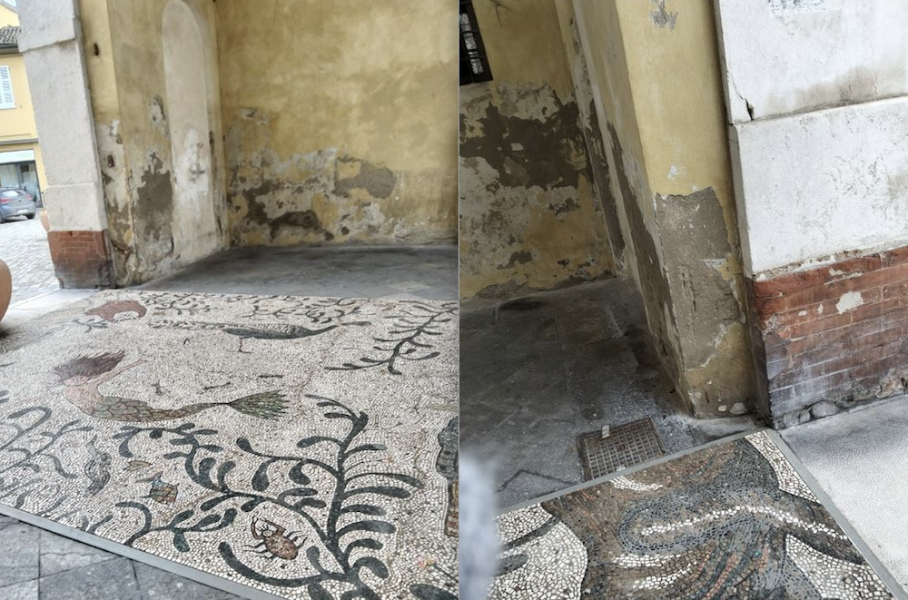 “Bellezza e degrado. Come dire la bella e la bestia, ma non è un film… in questi giorno si dibatte in città sulla sorte del bellissimo mosaico di Nicola Montalbini “Il Pavimento” che sembra non possa rimanere lì dove è stato collocato e dove è stato ammirato da Turisti e Cittadini per l’intero periodo natalizio.
