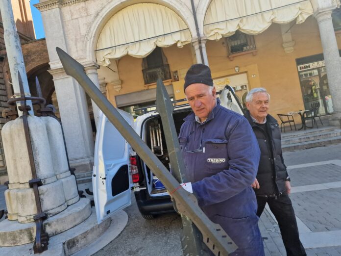 Tramite l’utilizzo di una piattaforma aerea, è stata effettuata la rimozione delle lancette dai quattro quadranti della Torre Civica. Tale intervento si è reso indispensabile per la ricalibrazione del peso, per garantire il corretto funzionamento dell’intero sistema. L’operazione odierna rappresenta il primo passo volto a restituire alla città un orologio pienamente efficiente, capace di scandire nuovamente il tempo per i cittadini.