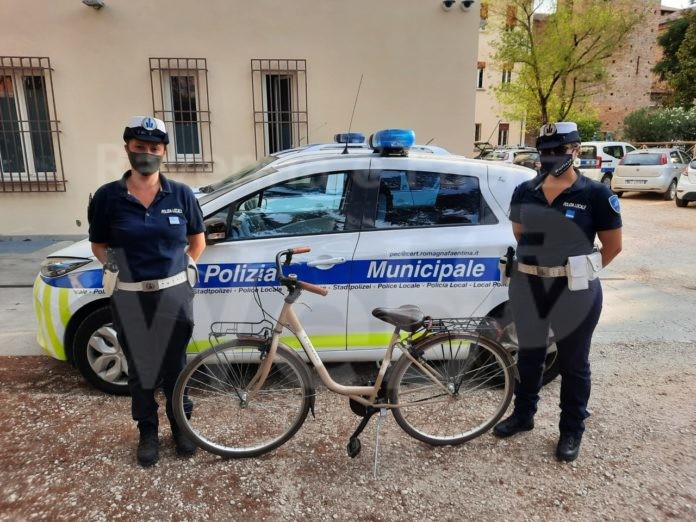 L’episodio è avvenuto nei giorni scorsi quando un 89enne faentino, residente nei pressi di piazza Sant’Agostino, in pieno centro, dalla sua finestra si è accorto che due persone stavano armeggiando davanti alla sua bici. A quel punto l’anziano è sceso in strada ma i ladruncoli sono stati più lesti dileguandosi con l’unico mezzo che l’89enne aveva e usava in città per i suoi spostamenti. L’anziano in lacrime è stato soccorso in strada da alcuni passanti che lo avevano visto disperato. Scattata la telefonata di segnalazione al centralino della Polizia Locale dell’Unione l’operatore di centrale ha immediatamente allertato una delle pattuglie in servizio che è intervenuta, in pochissimi minuti, in piazza Sant’Agostino. Gli agenti hanno raccolto le testimonianze di alcuni passanti che hanno descritto in maniera dettagliata gli autori del colpo. Grazie alla descrizione fornita, gli agenti hanno messo sotto osservazione alcuni luoghi di ritrovo abitualmente frequentati dai giovani più turbolenti della città e dopo qualche ora hanno fermato due tredicenni residenti in città in sella alla bicicletta rubata.