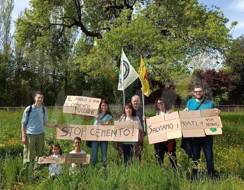 Nei giorni passati abbiamo fatto sit-in e foto con cittadine e cittadini venuti a mostrare solidarietà, con cartelli con scritto “salviamo i prati i via Monti”, “stop cemento su aree alluvionate” e continueremo a far conoscere quest’area alla cittadinanza.