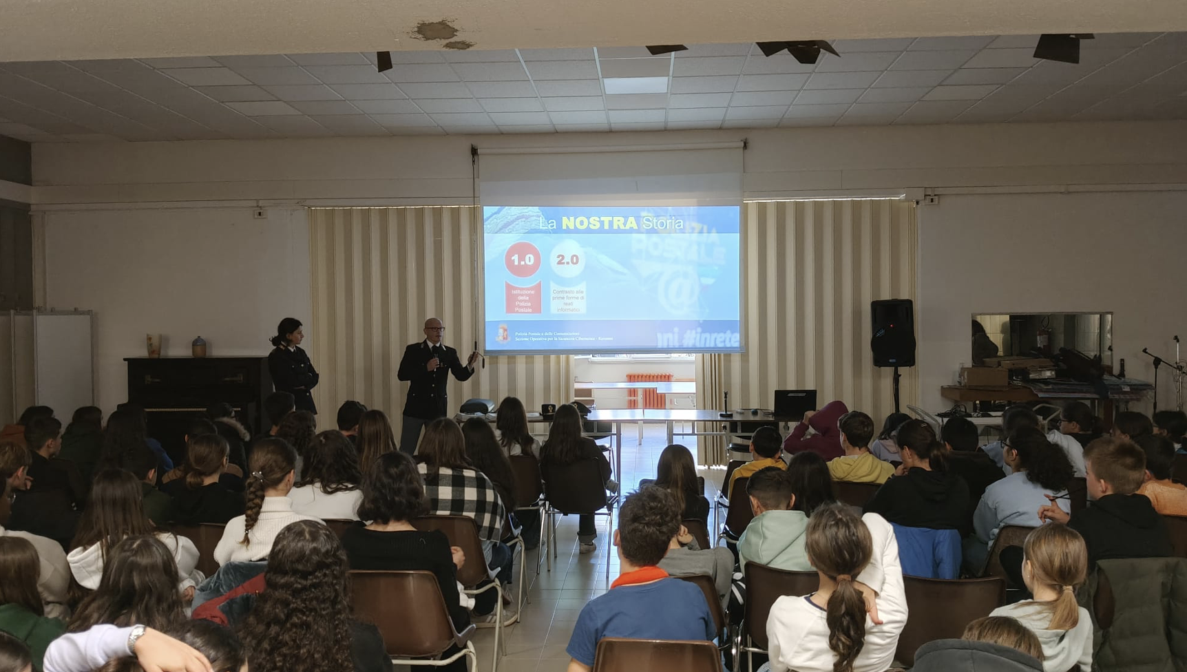 Durante l’incontro, attraverso contenuti multimediali e testimonianze dirette, gli operatori hanno aiutato i ragazzi a riconoscere e contrastare i comportamenti violenti, stimolando riflessioni e domande da parte degli studenti, che hanno partecipato con attenzione e curiosità.