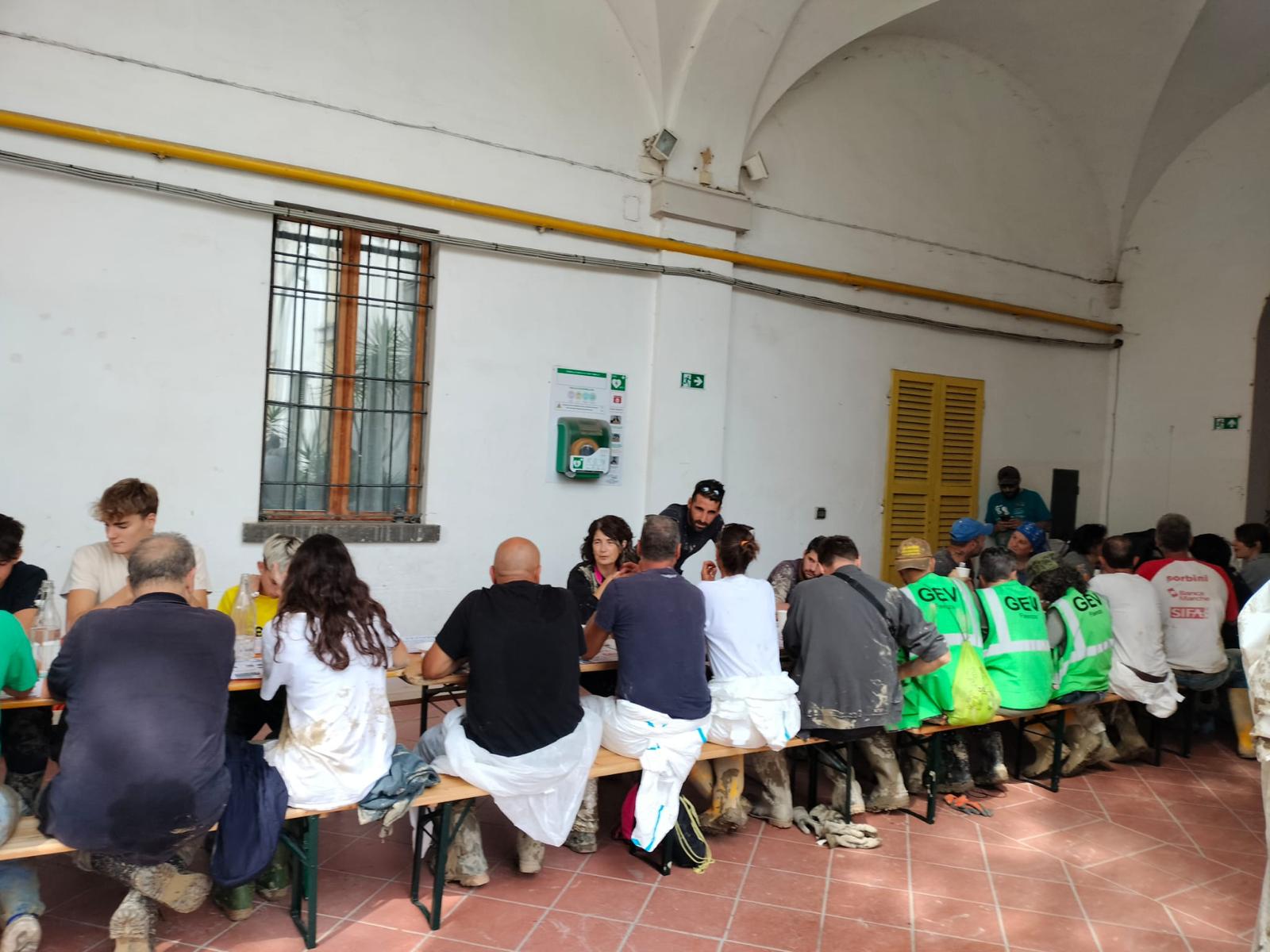 Pausa per i volontari con i pasti della parrocchia di Sant’Antonino in Borgo, la solidarietà non si ferma mai i pasti anche per gli alluvionati, in collaborazione con il Comune, la Caritas, la Piccola Betlemme e il rione Borgo Durbecco