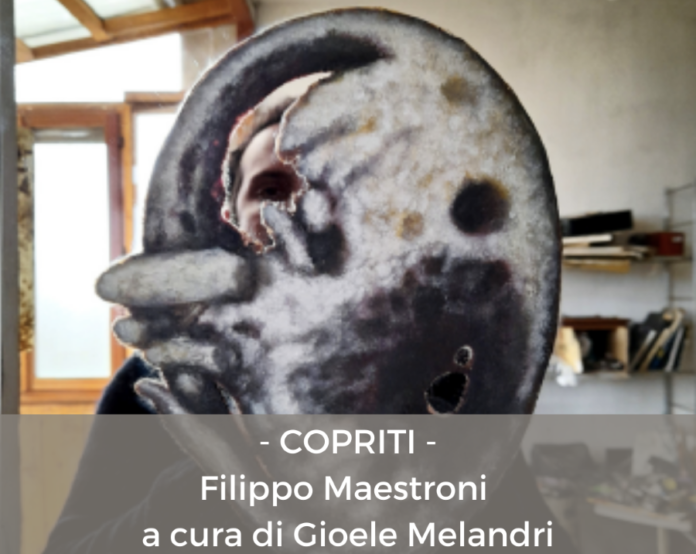 “Copriti nasce come metamorfosi del mio precedente percorso, “organi rocciosi” che cercava di rappresentare, attraverso la pittura su tela, la fragilità dei nostri corpi e delle nostre anime, prendendo organi del corpo umano e tramutandoli in viscere ossificate, calcificate, rocciose; la superficie impenetrabile però solcata da crepe e voragini da cui scaturiscono le nostre fragilità e le nostre insicurezze.