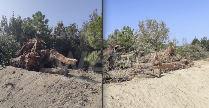 Nell’area interessata dai lavori si è proceduto all’abbattimento di parecchie decine se non centinaia di alberi, trattasi di tamerici, olivelle e pini di notevole dimensione, come da foto allegate.