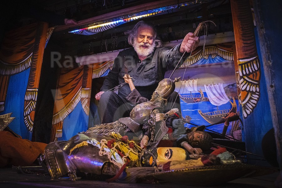 Infine, domenica 15 maggio alle ore 11:00 appuntamento speciale al Teatro Rasi di Ravenna, dove sarà ospite di Teatro del Drago e del Festival Arrivano dal Mare! il maestro cuntista e puparo di fama internazionale Mimmo Cuticchio, che dialogherà con lo studioso, autore e critico teatrale Massimo Marino in un incontro dal titolo A singolar tenzone. Un viaggio nella vita e nel lavoro del puparo, tra tradizione e instancabile ricerca ed innovazione. Il teatro di pupi di Cuticchio è il motore di una macchina teatrale contemporanea che affonda le sue radici nelle tecniche e nei saperi di un’antica tradizione proiettata verso il futuro, che prende corpo negli spettacoli del ciclo carolingio. Come gli altri maestri del Novecento, Mimmo Cuticchio ha dovuto creare una propria tradizione, avendo alle spalle una compiuta tradizione di partenza, che non voleva dimenticare né violentare. Ha infranto il recinto in cui rischiavano d’esser rinchiuse, conservate e isolate, le arti dell’Opra e del Cunto. Le ha tratte fuori dalla tradizionale visione d’una “vivente reliquia” del passato; fuori dalle mura di un immaginario Museo delle Tradizioni. Ha persino eroso, nella pratica e di conseguenza nella teoria, il confine tra teatro “di figura” e teatro d’attore e di regia. L’ampio respiro acquisito dalla compagnia Figli d’Arte Cuticchio con la sua guida, la varietà dei programmi teatrali e lo spessore dei progetti testimoniano l’immensa portata del lavoro di rielaborazione e crescita. L’affermazione internazionale della compagnia è dunque l’esito di una ricerca inesauribile su repertori e pratiche del narrare, di un rischio culturale costantemente praticato nella molteplicità delle forme e dei linguaggi.
