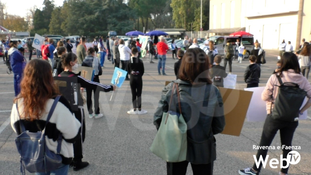 Flash mob del mondo sportivo in Piazzale Pancrazi a Faenza. L’iniziativa ideata dai lavoratori della piscina non voleva essere un grido di protesta contro l’ultimo decreto del governo, ma un grido di dolore da parte di tutte quelle realtà che avevano effettuato investimenti e rinunce per osservare tutte le norme di sicurezza e ora sono costrette nuovamente a fermarsi, facendo tornare nell’incertezza tutti i lavoratori del mondo sportivo e lasciando i tutti gli iscritti senza un’attività importante per il loro sviluppo e il loro benessere. Nell’ultimo fondo attivato dal Comune di Faenza sono previsti aiuti anche a palestre e piscine. Per quanto concerne le associazioni sportive, continua il confronto con le singole realtà per capire se sarà possibile qualche provvedimento in futuro