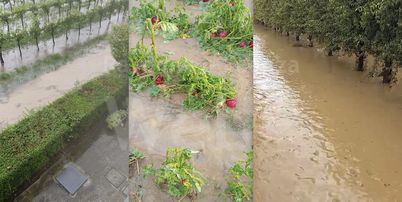 Le grandinate, piuttosto intense e prolungate, hanno colpito dure le coltivazioni nelle zone di Bagnacavallo, Villanova, Cotignola, in particolare nella zona di Budrio e Bagnara di Romagna. Qui si segnalano campi sommersi, ma soprattutto piante defogliante e frutti in fase di crescita e maturazione devastati dai chicchi di ghiaccio. Danni importanti anche nel territorio di Piangipane (Ravenna) con produzioni di orticole martoriate da acqua e grandine.