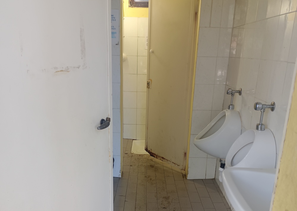 Entrando nei servizi igienici, Monti e Fabbri hanno riscontrato una situazione definita fortemente critica: bagni fuori uso, in condizioni di degrado, con evidenti segni di vandalismo e, in alcuni casi, completamente inaccessibili alle persone con disabilità.