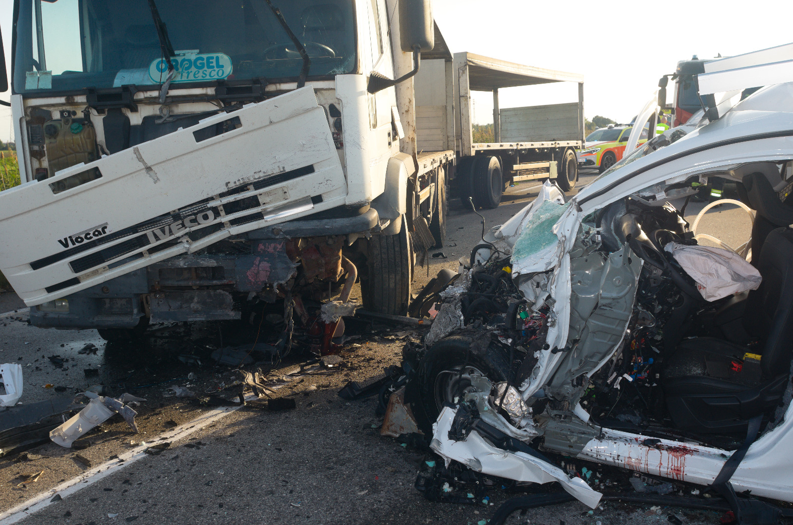 Un altro grave incidente stradale, nel pomeriggio di venerdì, è avvenuto lungo la Romea Dir, al chilometro 2+700, dove si sono scontrati un furgoncino e un camion con rimorchio. L’impatto è stato molto violento. I due mezzi procedevano in direzioni opposte. Il camion si stava dirigendo verso il porto, il furgoncino stava raggiungendo l’autostrada. È stato quest’ultimo ad invadere la corsia di marcia. Per il mezzo pesante l’impatto è stato inevitabile. Il conducente ha tentato di spostarsi a destra, ma inutilmente. Lo scontro frontale ha avuto gravi ripercussioni sull’uomo al volante del veicolo più leggero. Il ferito è stato intubato e trasportato in elicottero al centro traumatologico dell’ospedale Bufalini di Cesena. Illeso il camionista. Per estrarre il ferito dall’abitacolo, accartocciato, è dovuta intervenire una squadra dei Vigili del Fuoco. Alla Polizia Locale di Ravenna il compito di ricostruire quanto successo, che cosa abbia portato all’invasione di corsia.