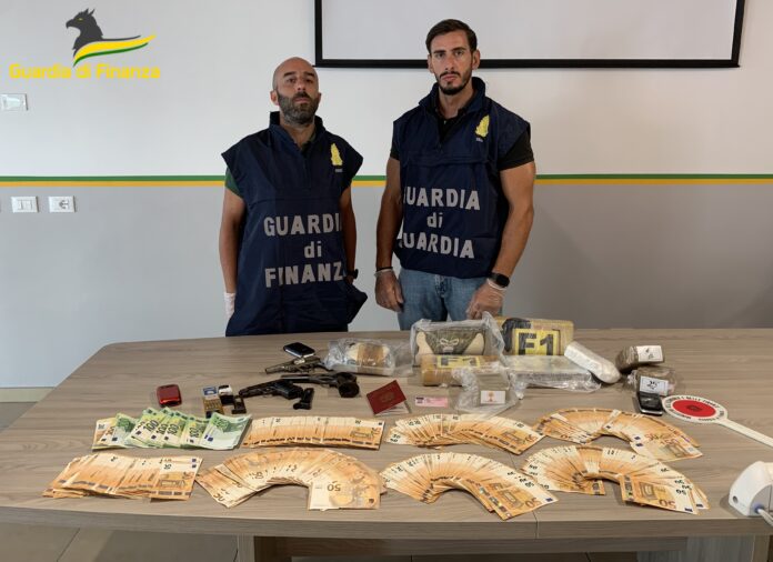 Tra le varie perquisizioni eseguite, i finanzieri hanno individuato e sequestrato, oltre a tutta la strumentazione per il taglio della sostanza, oltre 6,4 chilogrammi di cocaina, 1,3 chilogrammi di hashish, 3 pistole, di cui una con matricola abrasa, con 79 cartucce, ed oltre 60.000 euro in contanti, questi ultimi da ritenersi provento dell’attività delittuosa.