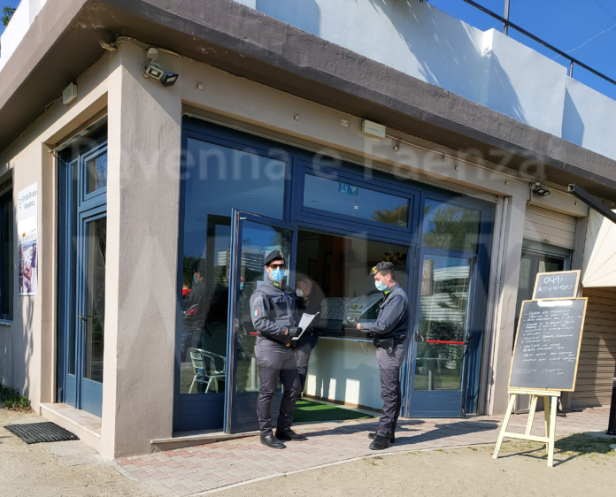 Nel corso dell’attività di pattugliamento predisposta per la “domenica delle palme”, all’ora di pranzo è stato individuato un ristorante, sito sul lungomare antistante la pineta di Pinarella di Cervia (RA), all’interno del quale, in spregio alle prescrizioni vigenti e ad ogni cautela necessaria a limitare la diffusione del virus, si stava svolgendo la normale attività di ristorazione, con tanto di cameriere che provvedeva alla somministrazione dei pasti al tavolo.