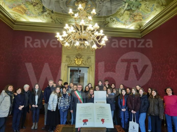 Nella giornata di giovedì gli studenti tedeschi e faentini hanno visitato Palazzo Manfredi e alle sue stanze affrescate. È stata l’occasione di un breve saluto da parte dell’amministrazione comunale che ha ricevuto studenti e accompagnatori nella Sala Rossa dove infine hanno posato per una foto di gruppo.