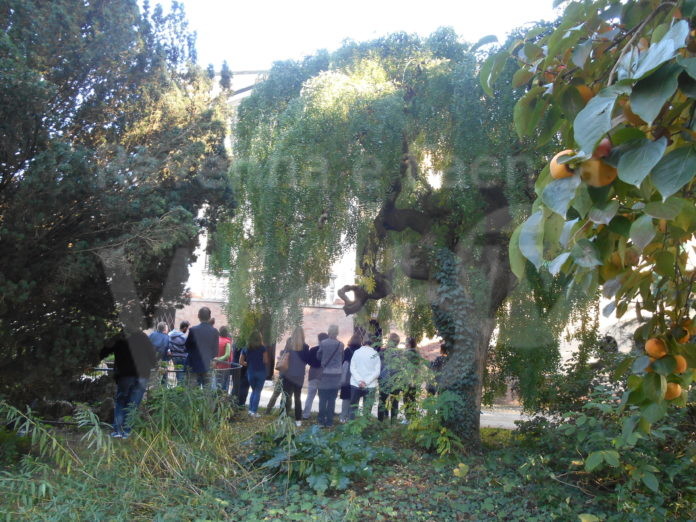 il caso della prima tappa, il piccolo ma affascinante giardino di Palazzo Alpi in fondo a Corso Matteotti, quasi di fronte alla piazzetta Santa Lucia dove il corso si congiunge a via Castellani formando la “punta” con i due lecci secolari (o quasi, perché furono piantati nel 1922).