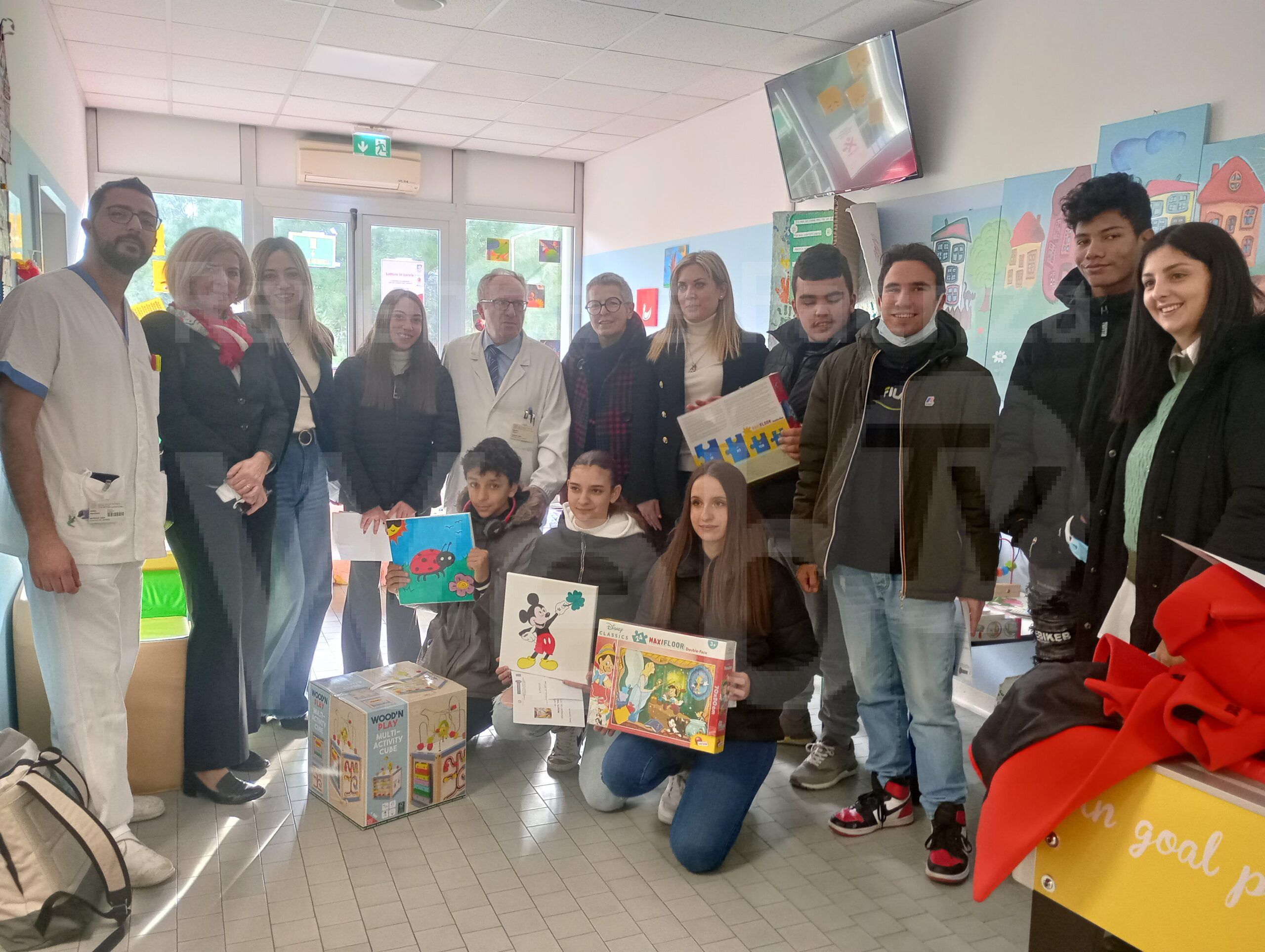 Una rappresentanza di insegnanti e studenti dell’I.P.S. Olivetti Callegari di Ravenna si e’ recata ieri mattina alla Pediatria dell’Ospedale Santa Maria Croci per consegnare giochi interattivi, un i-pad e dipinti realizzati dagli stessi studenti. I giochi sono il ricavato ottenuto dalla partecipazione di alcuni studenti ai progetti: ” Creatività e Arteterapia” e “Un sacco bello”. Questi progetti nascono con lo scopo di stimolare la creatività, aumentare l’autostima e la consapevolezza di sé, migliorare le abilità di comunicazione, ridurre lo stress, l’ansia e favorire l’inclusione. Obiettivi che sono alla base della progettualità dell’Istituto che ha come fine principale quello di riconoscere il valore e il potenziale di ogni studente, nei percorsi di vita scolastici e sociali.