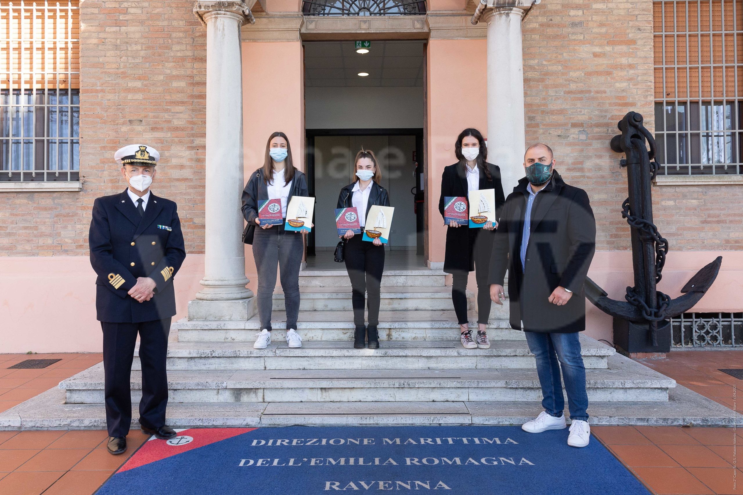 Alle ragazze, a ricordo dell’evento, è stato consegnato dal Comandante in 2^ della Capitaneria il volume Non solo per mare e il mosaico di Francesca Gazzotti raffigurante l’antico porto di Classe. Mentre il sito portoravennanews ha donato il mosaico di Anna Fietta che riproduce il logo della Giornata del Mare di Ravenna.