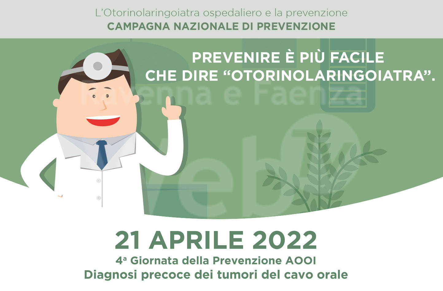 Giovedì 21 Aprile 2022 si terrà la IV Giornata della Prevenzione per la diagnosi precoce dei tumori del cavo orale promossa da AOOI, Associazione Otorinolaringologi Ospedalieri Italiani.