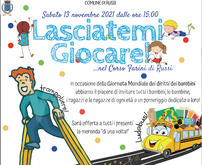 Anche il Comune di Russi sabato 13 novembre 2021 celebrerà la Giornata Mondiale dei diritti dei bambini, con un pomeriggio dedicato a tutti i bambini, le bambine, i ragazzi e le ragazze di ogni età.