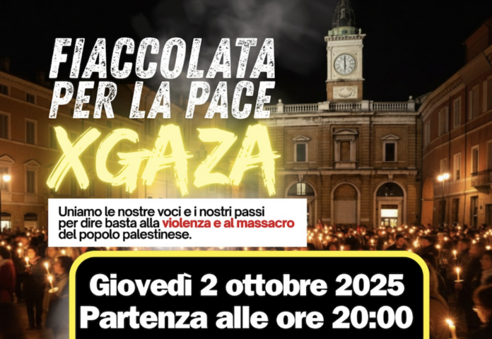 Proseguono sul territorio le iniziative a sostegno del popolo palestinese e a favore della pace. Per giovedì 2 ottobre è stata organizzata la “Fiaccolata per la pace per Gaza” che partirà da piazza del Popolo e si concluderà di fronte all’ospedale di Ravenna. “Uniamo le nostre voci e i nostri passi – commentano gli organizzatori – per dire basta alla violenza e al massacro del popolo palestinese. Insieme per la pace, la solidarietà e la dignità umana”.