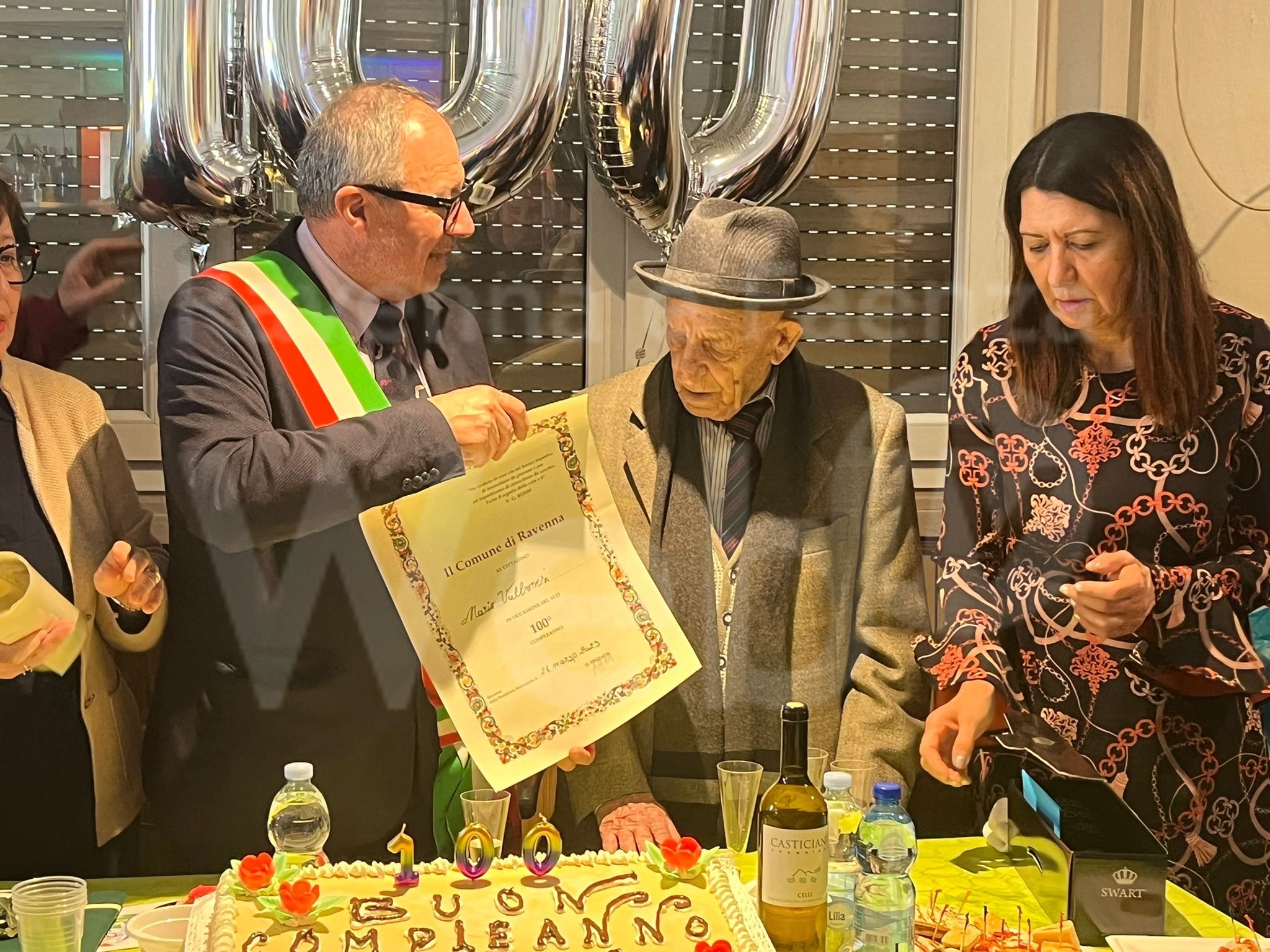 Il vicesindaco Eugenio Fusignani ha portato gli auguri e il saluto suoi e dell’Amministrazione comunale a Mario Valbonesi, detto “Marî”, che oggi al circolo Endas di San Zaccaria ha festeggiato il traguardo dei cento anni. Valbonesi ha festeggiato con la moglie Giovanna, la figlia, la nuora, i nipoti e il pronipote, parenti e amici di tutto il paese e si è detto felice e commosso di tutto l’affetto ricevuto. “Naturalmente – ha sottolineato – la mia gioia più grande sarebbe stata quella di avere qui con me anche mio figlio Widmer, che purtroppo ci ha lasciati lo scorso anno. A maggior ragione ringrazio quindi tutti quelli che hanno voluto essere qui a circondarmi del loro affetto”.