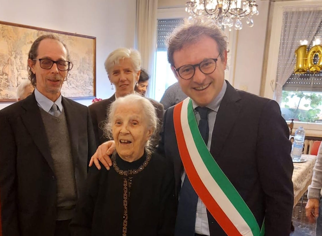 Il sindaco Massimo Isola ha portato alla signora Irene Albina gli auguri della città donandole una litografia a tiratura limitata di una veduta faentina da un disegno originale di Romolo Liverani.