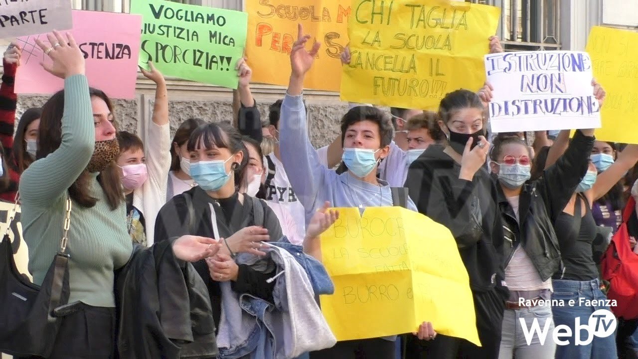 Gli studenti del liceo di Faenza in sciopero nella mattinata di mercoledì 30 settembre. La protesta è nata in una delle sedi dell’istituto, il Ballardini, dove permangono ancora alcuni cantieri a causa dello slittamento dei lavori dovuto al coronavirus. Cantieri che impediscono l’accesso ai laboratori e che fino all’altro ieri si ripercuotevano sul regolare svolgimento delle elezioni a causa del troppo rumore. Se ad oggi la gran parte del problema dell’inquinamento acustico è risolto, non sono risolti però i disagi: classi piene di polvere, sporcizia, impalcature, macerie. Il 6 ottobre è stato fissato un incontro con i responsabili della Provincia di Ravenna, l’ente a cui spetta la gestione delle scuole superiori, per cercare di dare una risposta a queste problematiche. Ma per i ragazzi è già ormai trascorso troppo tempo ed oggi è nata la protesta, con un corteo che ha attraversato il centro storico di Faenza.