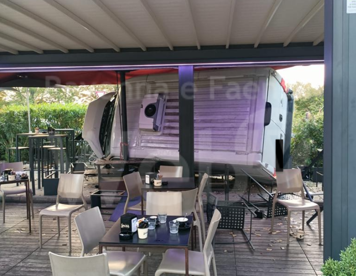 Grande paura venerdì mattina al Sacao Caffè di via Granarolo, di fronte al punto vendita Comet. Alle 7.30, un furgone è piombato contro il dehor del pubblico esercizio, cappottandosi. Nei tavolini all’esterno del locale erano presenti alcuni clienti, fortunatamente rimasti illesi. Il veicolo era in transito lungo via Granarolo, in direzione dell’autostrada, quando, per cause al vaglio della Polizia Locale, il conducente ha perso il controllo, piombando a tutta velocità nel parcheggio della controstrada, anche qui il caso ha voluto che non venisse coinvolta nessuna persona, e terminando la propria corsa nel dehor. Prima di schiantarsi e arrestarsi appoggiandosi su una fiancata, il furgone è andato a sbattere contro tre auto in sosta, danneggiandole e abbattendo siepe e muretto del gazebo.