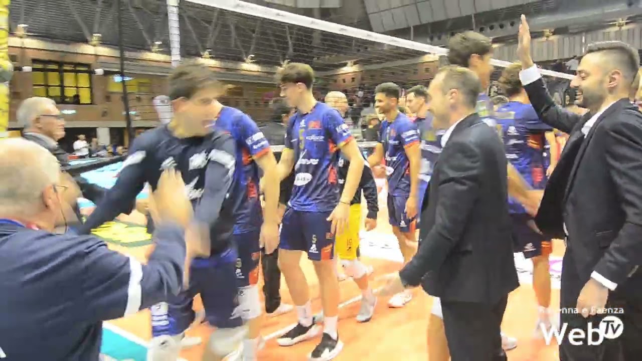 L’esultanza a fine partita per giocatori e staff del Consar Volley , finisce 3 a 2 partendo da uno 0 a 2 iniziale, gli uomini del coach Valentini sono riusciti a portare a casa un match che era partito malissimo