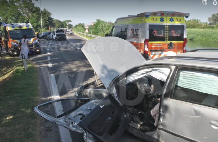 Grave scontro nel pomeriggio, verso le 17.00 all’incrocio tra Via Mandriole e Via Gattolo Inferiore a Mandriole.