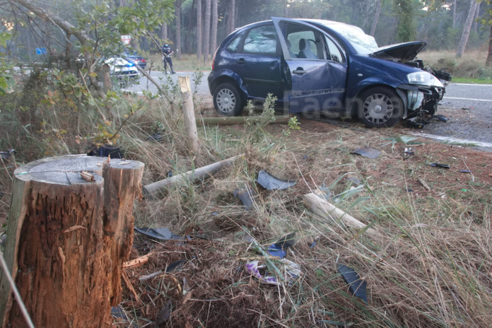 Grave incidente questa mattina alle ore 6 in via delle Valli a Marina Romea, una Citroen c3 con a bordo un giovane dopo aver toccato di striscio una vettura durante un sorpasso è uscito di strada sulla sinistra andando a centrare la base già tagliata di un tronco di pino.