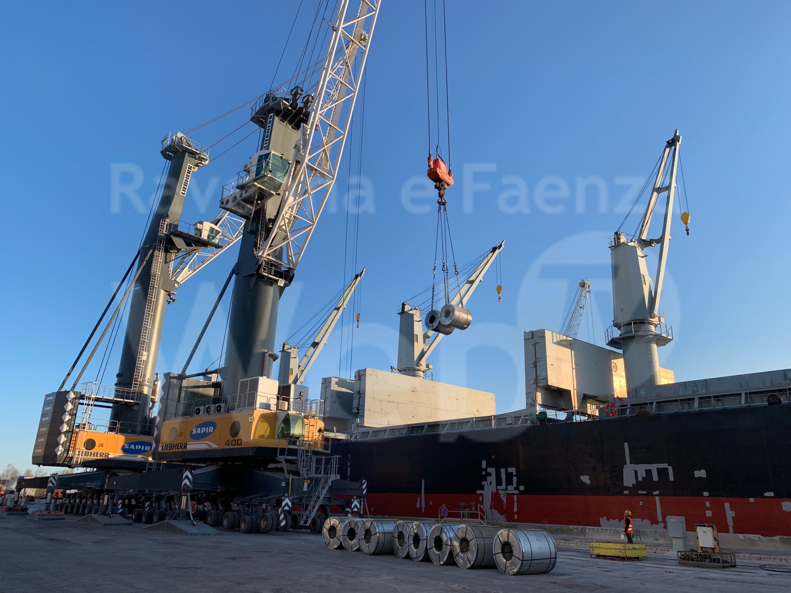 Sapir stessa sta affrontando (fortunatamente, beninteso!) la congestione delle banchine e degli spazi coperti e scoperti adibiti al magazzinaggio. Tuttavia, la particolarità della situazione posta alla sua attenzione, ha indotto la Società ravennate a farsi carico del problema, rendendosi disponibile a far ormeggiare nelle proprie banchine la MV Hongli 8 e a sbarcare, nei giorni scorsi, 3828 tonnellate di coils, ora in corso di carico sui camion diretti a Miradolo Terme.