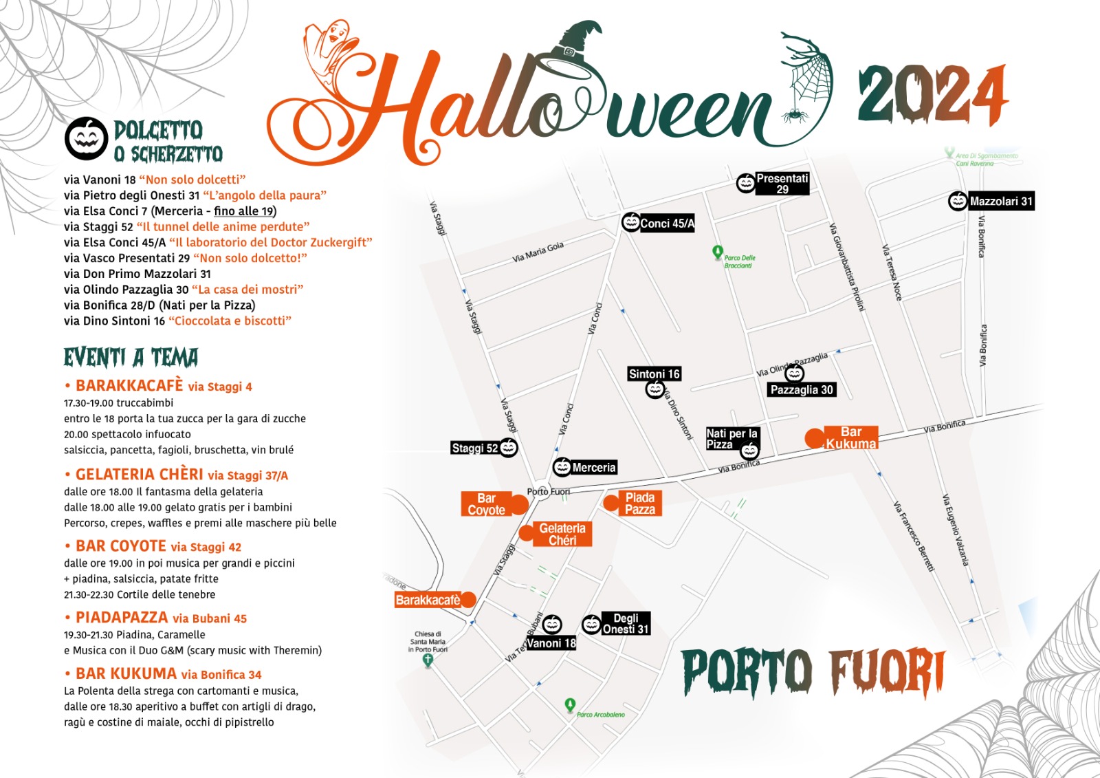 Una serata ricca di appuntamenti per le strade di Porto Fuori! Gli esercenti e i cittadini del Paese si preparano ad accogliere genitori e bambini nelle loro attività e case addobbate a tema.