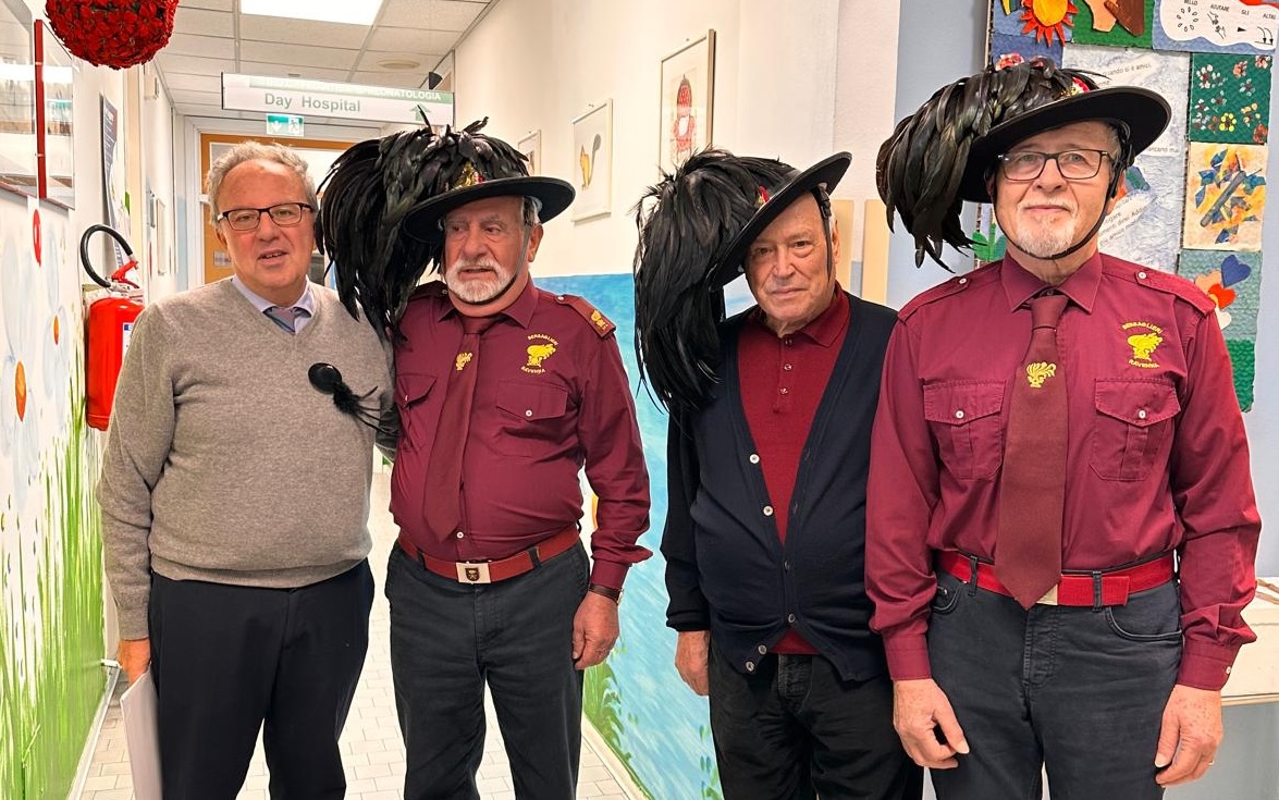 Pietro, Rosario ed Enzo, in elegante divisa da Bersagliere con l’inconfondibile cappello piumato, hanno portato un momento di gioia ai piccoli pazienti ricoverati: tra sorrisi, fotografie e saluti festivi, hanno donato ai bambini dei cappellini in miniatura dei Bersaglieri, augurando a tutti un sereno Natale e buone feste.