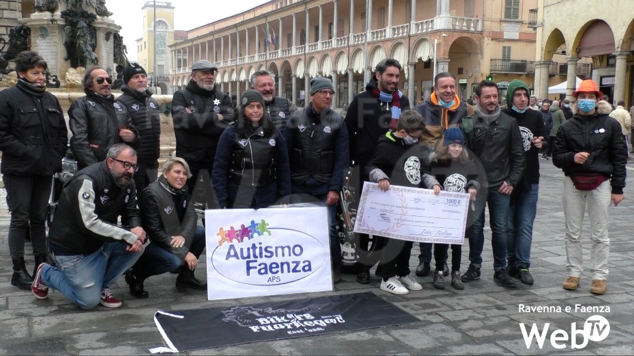 Mille euro a favore dell’associazione Autismo Faenza. Nella giornata di domenica il gruppo dei Bikers Fuorilegge della provincia di Ravenna ha raggiunto Piazza della Libertà a Faenza per consegnare il ricavato della raccolta fondi portata avanti in questi mesi di ripresa delle attività. Ogni anno i Bikers Fuorilegge scelgono una realtà da sostenere attraverso raccolte fondi. In passato sono state aiutate la Pediatria di Ravenna, portando anche a Natale i doni ai bambini ricoverati; sono state aiutate le famiglie seguite dalla Caritas di Lugo, sono state sostenute le attività del centro sociale Le Rose di Ravenna e della cooperativa San Vitale.