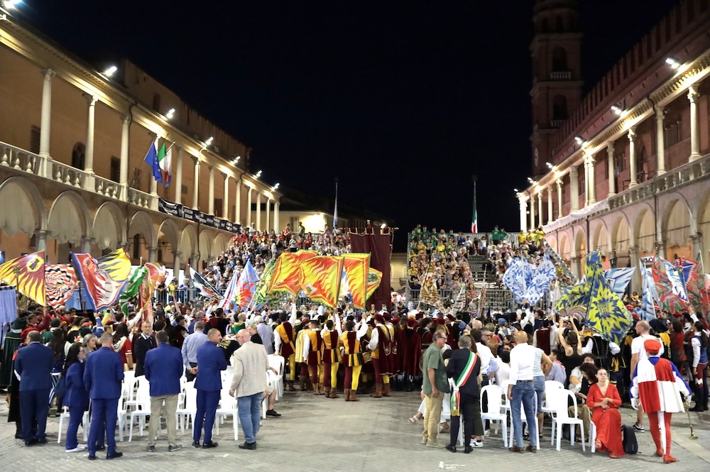 L’emozione continua questa sera, sabato 19 luglio, con le avvincenti performance di Grande Squadra e Musici, a partire dalle ore 20. I primi a scendere in campo saranno i Principi d’Acaja di Fossano, seguiti dagli Sbandieratori Arquatesi – Arqua Polesine, che chiuderanno la serata attorno alle 23.10.
