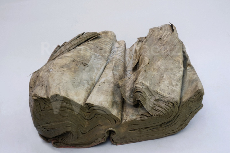 Come scrive Marco Sangiorgi nella prefazione al catalogo: “Archiviati i momenti riservati alla cronaca in diretta, si avverte l’esigenza di un approccio diverso, meno frenetico, più riflessivo. Ritratti di libri sopraffatti dal fango, nella morsa di un’agonia lenta e implacabile. Lo sfondo neutro delle immagini non contempla alcun contesto e indica senza indugi il soggetto prescelto; quasi abbozzo di scultura”. E prosegue: “Chi gestisce la raccolta dei rifiuti ci informa sul destino riservato ai libri alluvionati: saranno macinati nell’ambito del programma di riciclo. Nuova vita dunque? torneranno libro? o saranno declassati a carta da pacchi o altro? La sensazione di fotografare per l’ultima volta un condannato. Il pensiero mi accompagna fin dal primo scatto; chi ama leggere sulla carta capirà.”