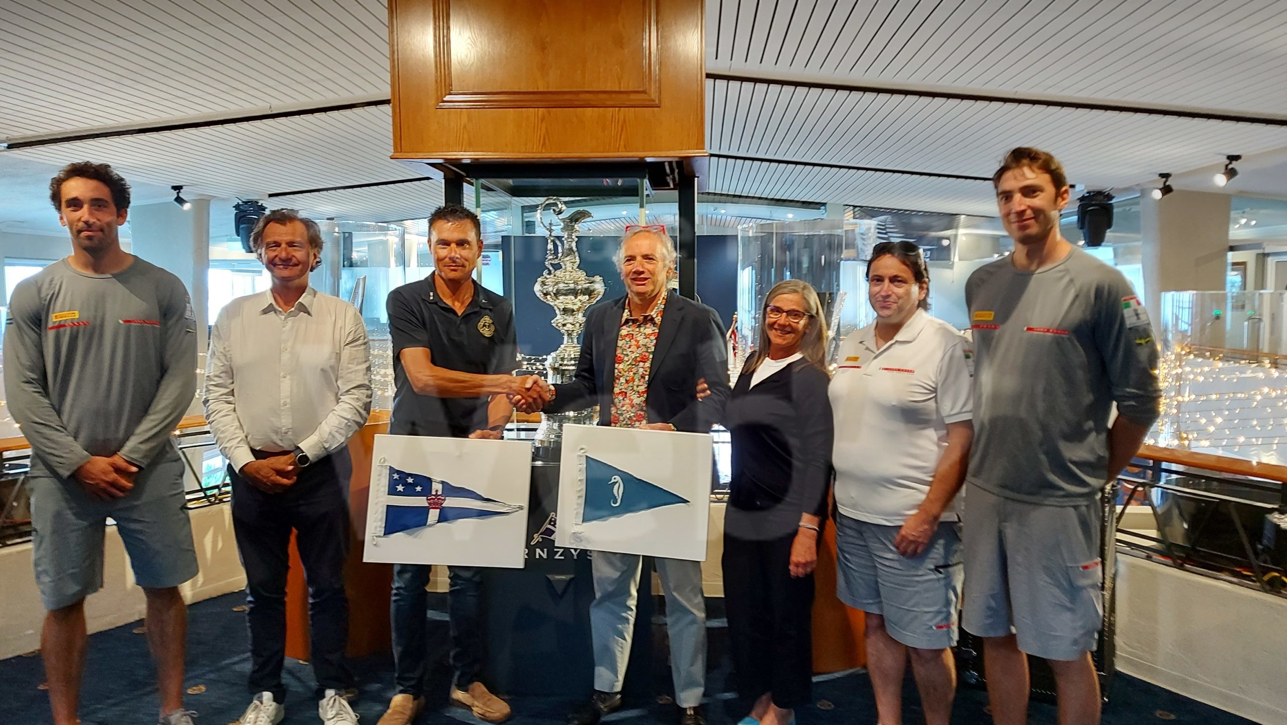 Tutti assieme hanno partecipato presso la sede del Royal New Zealand Yacht Squadron a una informale cerimonia proprio di fronte alla Auld Mug nel corso della quale Matteo Plazzi e Aaron Young, Commodoro dello Squadron, hanno scambiato i rispettivi guidoni dei Club.